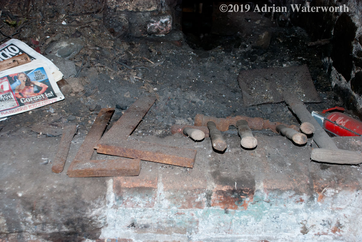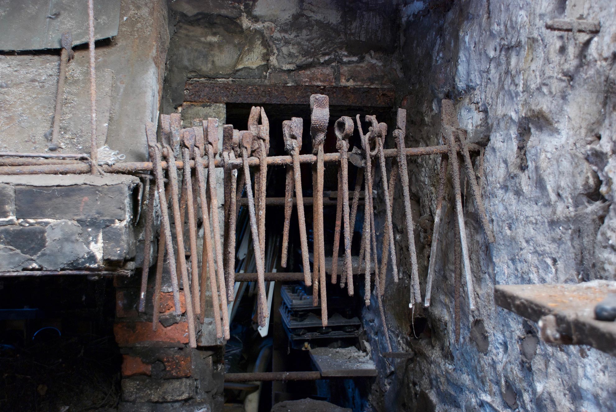 Now, I suppose I could pass as a mighty man (in a certain light) and my hands are large-ish and somewhat sinewy. I’m not too sure about my brawny arm muscles being strong as iron bands (not yet anyway) but I suppose two out of three isn’t bad. More importantly, there is a spreading chestnut tree outside and, under it, you will indeed find the village smithy. Our current home was the “Drummore Smiddy” for probably the best part of a century, although the forge fell into disuse around twenty years ago. Almost everything is still there though (but for the anvil) and, ever since moving in last year, I have been increasingly fascinated, tempted and inspired by looking at the old forge and the assortment of dusty and rusting tools and equipment around it.